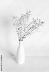 Bouquet of meadowsweet (Latin Filipndula) in a vase on a pink background.