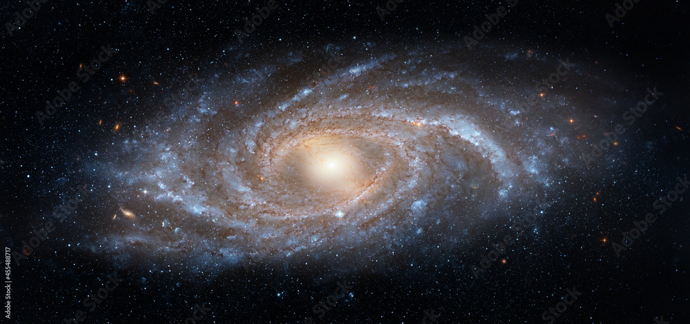 A view from space to a spiral galaxy and stars. Universe filled with stars, nebula and galaxy,. Elements of this image furnished by NASA.