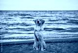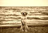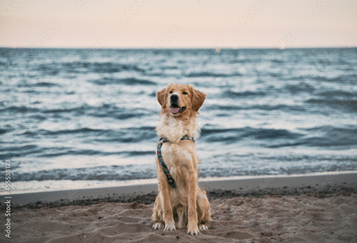 golden retriever on the beach. picture with copy space for text design