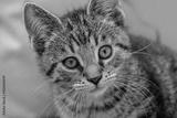 Portrait of a cute tabby kitten. Newborn kitten, Baby cat, Kid animal and cat concept. Domestic animal. Home pet. Cozy home cat, kitten. Copy space