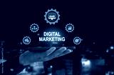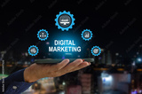 Man hand holding smart phone digital marketing word with icon business virtual screen