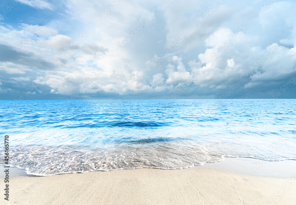 Empty beach tropical sea and beautiful cloudy sky