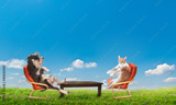 cat and dog relaxing