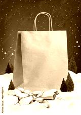 Sac kraft, soldes d'hiver, sac dans la neige, espace pour du texte