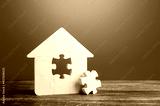 Puzzle house with a missing part. Housing construction, design and engineering. Mortgage loan for purchase real estate. During construction work. Reconstruction, renovation. Investments in building