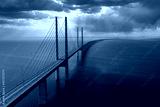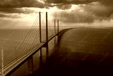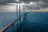 Panoramic aerial view of the Oresundsbron bridge between Denmark and Sweden. Oresund Bridge view at sunset.