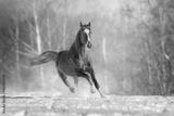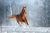 Red Horse run gallop in winter snow wood landscape