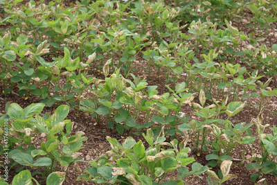 Soybean field damaged by herbicide on springtime in the italian countryside