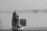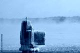 Ice covered mooring pollard or docking pillar by the Baltic sea in Helsinki, Finland.