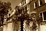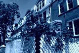 Red Roses with a Row of Brick Residential Buildings and Homes in Astoria Queens New York