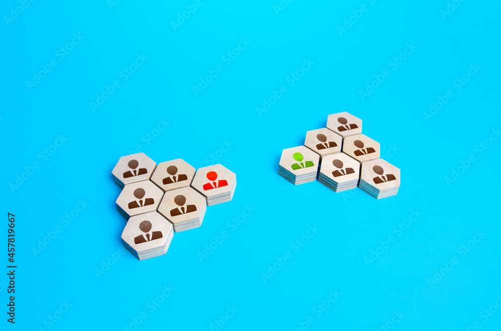 Two rival groups of businessmen. Rivalry competition. Resolving conflicts through negotiations and finding a compromise. Competing clans. Interethnic strife. Confrontation. Business group competition