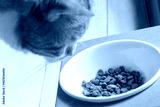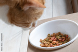 エサ台からご飯を食べる茶白猫