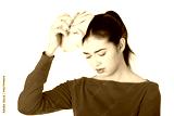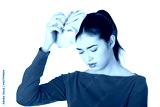 Woman with ice bag for headaches and migraines