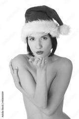 Sexy toples woman with perfect slim body wearing santa hat