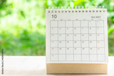 October month, Calendar desk 2021 for organizer to planning and reminder on wooden table with green nature background