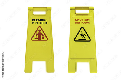 Wet floor and cleaning in progress isolated on white background.clipping path.