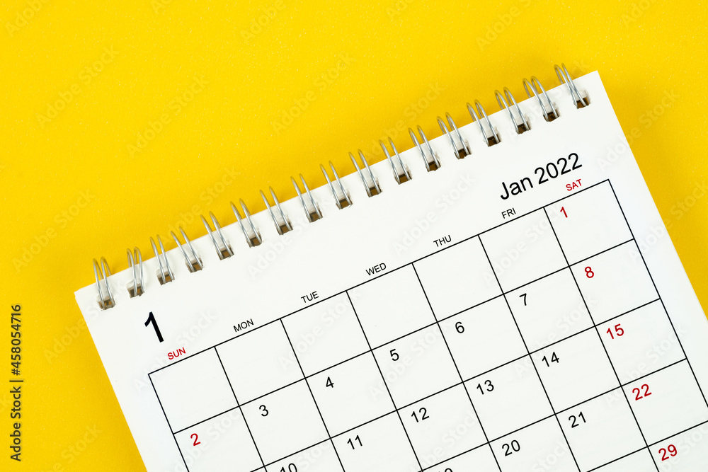 January month, Calendar desk 2022 for organizer to planning and reminder on yellow background