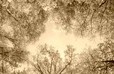 autumn yellow trees against blue sky. Indian summer, Autumnal last warm season. beautiful golden Fall. copy space