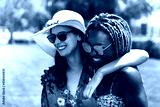 Portrait of smiling multiracial lesbian couple in the park having fun.