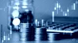 Bull market trend. Cryptocurrency. Bitcoin Stock Growth. Chart shows a strong increase in the price of bitcoin. Investing in virtual assets. Investment platform with charts and bitcoin.