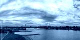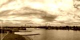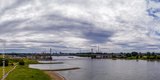 Panoramic view of the Rhine motorway bridge near Leverkusen, Germany. Drone photography.