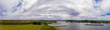 Panoramic view of the Rhine motorway bridge near Leverkusen, Germany. Drone photography.