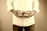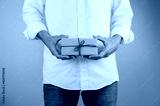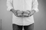 Hand holding gift box, new year gift box, Christmas gift box ,copy space. Christmas, hew year, birthday concept.