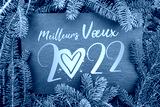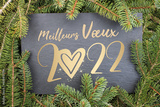 Meilleurs vœux 2022, fond ardoise et branches de sapin