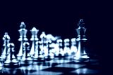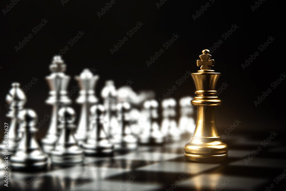Close up king chess challenge battle fighting with other chess team on chess board concepts of leadership and strategy or strategic plan and human resource or risk management or business team player.