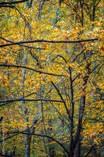 A colorful canopy of yellow leaves in Pisgah Forest