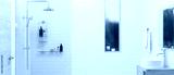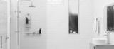 Contemporary bathroom interior with wood and tiles design, modern shower zone