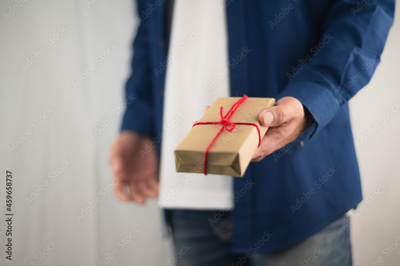Person holding gift box, new year gift box, Christmas gift box ,copy space. Christmas, hew year, birthday concept.