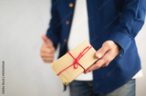 Person holding gift box, new year gift box, Christmas gift box ,copy space. Christmas, hew year, birthday concept.