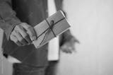 Person holding gift box, new year gift box, Christmas gift box ,copy space. Christmas, hew year, birthday concept.