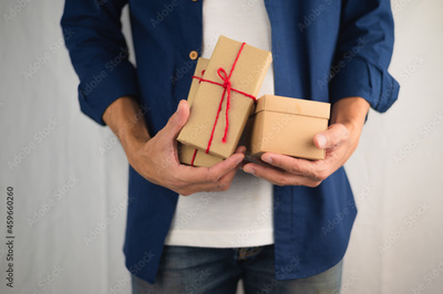 Hand holding gift box, new year gift box, Christmas gift box ,copy space. Christmas, hew year, birthday concept.