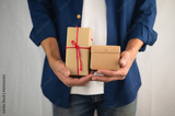 People holding gift box, new year gift box, Christmas gift box ,copy space. Christmas, hew year, birthday concept.