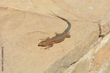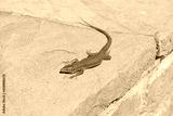 Eine Eidechse sitzt auf den Steinen (Dracheninsel, Mallorca)
