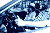 Young couple in a new car. A man driving a car with his girlfriend and having fun. Buying and renting a car. Travel, tourism, recreation.