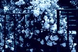 White Roses along a Fence in a Home Garden in Astoria Queens New York