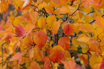 Autumn Fall colorful yellow and orange leaves on the bush close up