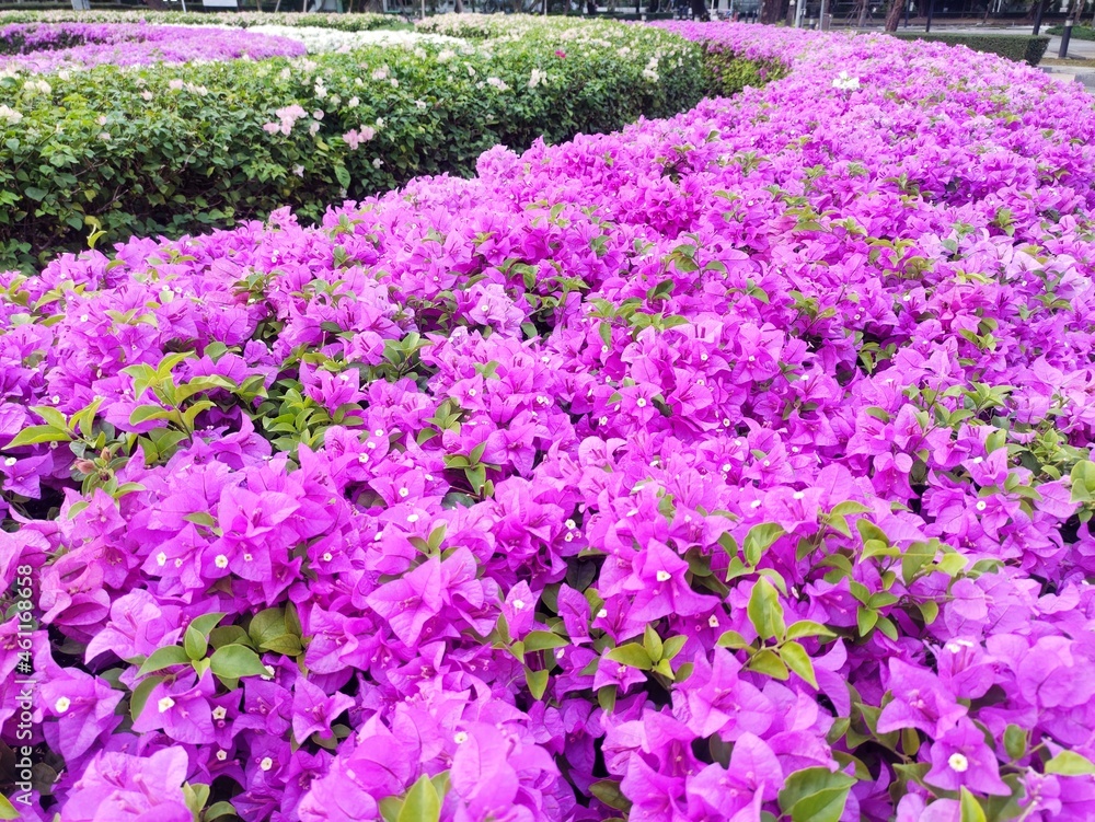 paper flowers bush in full bloom. flowering shrubs for garden and landscape design. Bougainvillea glabra, the lesser bougainvillea, is the most common species of bougainvillea used for bonsai