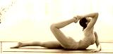 Side view of Asian woman wearing green sportwear doing Yoga exercise.Yoga bow or dhanurasana pose.Calm of healthy young woman breathing and meditation with yoga at home.Exercise for wellness life