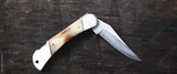 folding knife on an old brown board