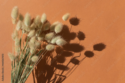 Fluffy dry lagurus ovatus or hares-tail grass bouquet on the beige background.