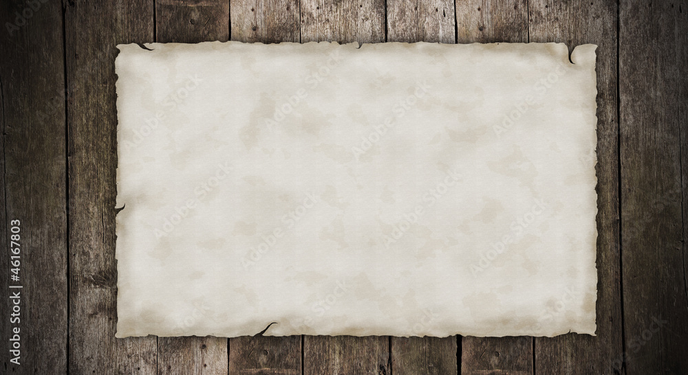 Blank old paper on wooden planks