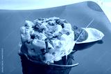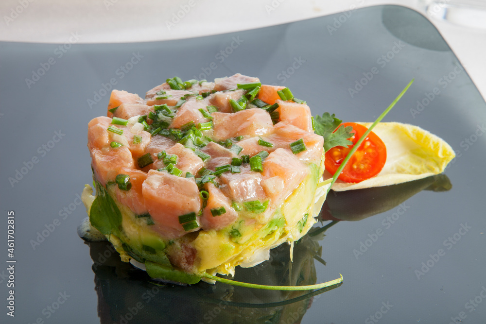 Ensalada fresca de salmón con fruta y verduras. Fresh salmon salad with fruit and vegetables