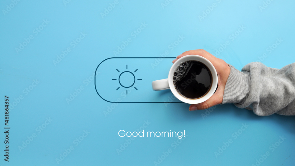 Switch to the sun icon and a cup of coffee. A symbol of a good start to the day, good morning