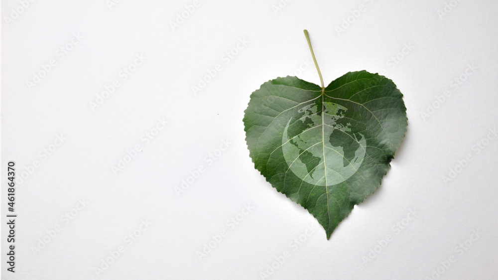 The silhouette of the planet earth on a green leaf. A symbol of concern for the environment