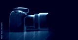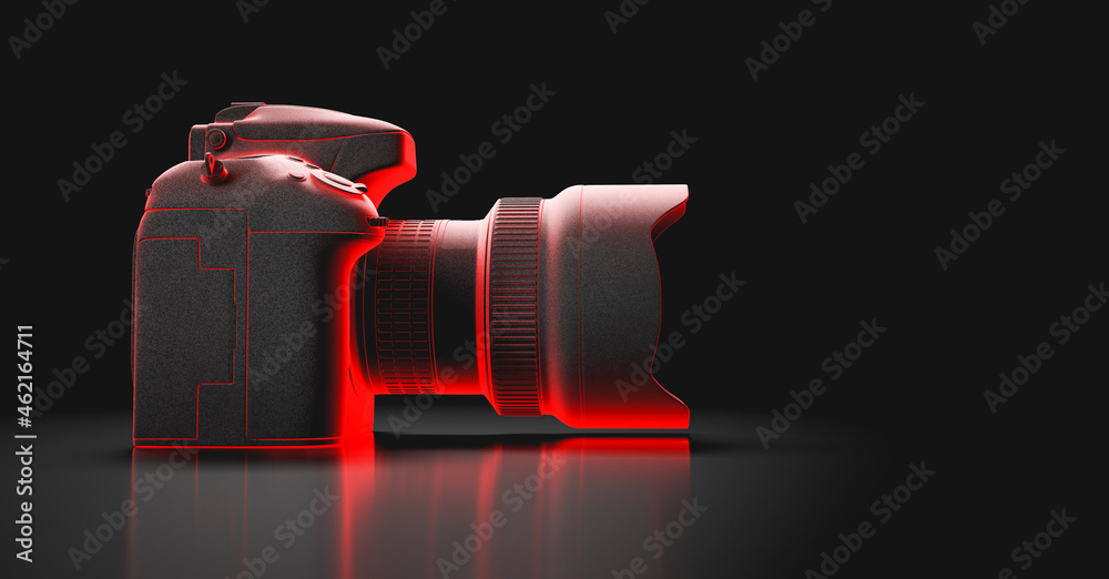 Professional digital camera in neon light