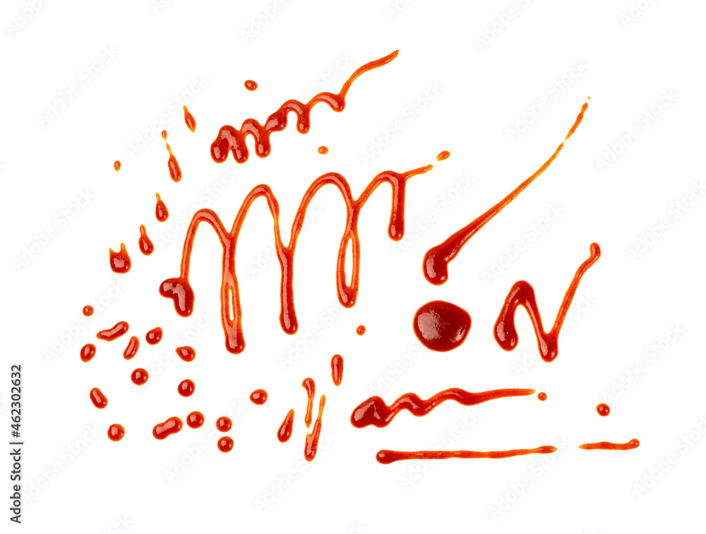Sriracha Drops Isolated, Hot Spicy Sauce Splash, Ketchup Blobs
